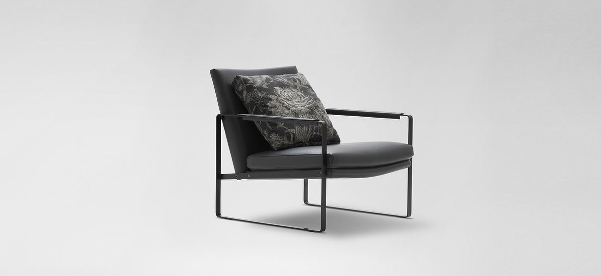The epitome of modern design, the sharp masculine lines of the Leman chair are a welcome addition to interiors ranging from mid-century to contemporary. Available with a brushed or darkened steel frame, your choice of fabric or leather upholsters seat cushions layered with high resilient foam and feather and an optional loose back pillow filled with a feather-down blend. Also available in a more petite, small version to accommodate spaces of all sizes.